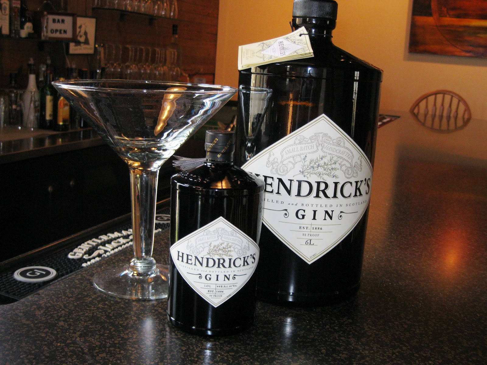 We have several customers, our landlord among them, who prefer the unusual taste of Hendrick's Gin over all others. Generally they require a cucumber garnish, as opposed to the traditional olive or twist. I like it myself and it has been on our back shelf ever since it came out in 1999. At Hell's Point Seafood in Annapolis, during a summer trip over the bay last year, I alerted to the huge dummy bottle of Hendricks they had perched on their bar. I coveted it immediately and began bugging my salesman for one.