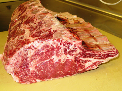 We're pretty excited to have scored the Roseda Beef. Here's the rib roast, which Kevin will bone and roll in preparation for it's slow roast on Monday.